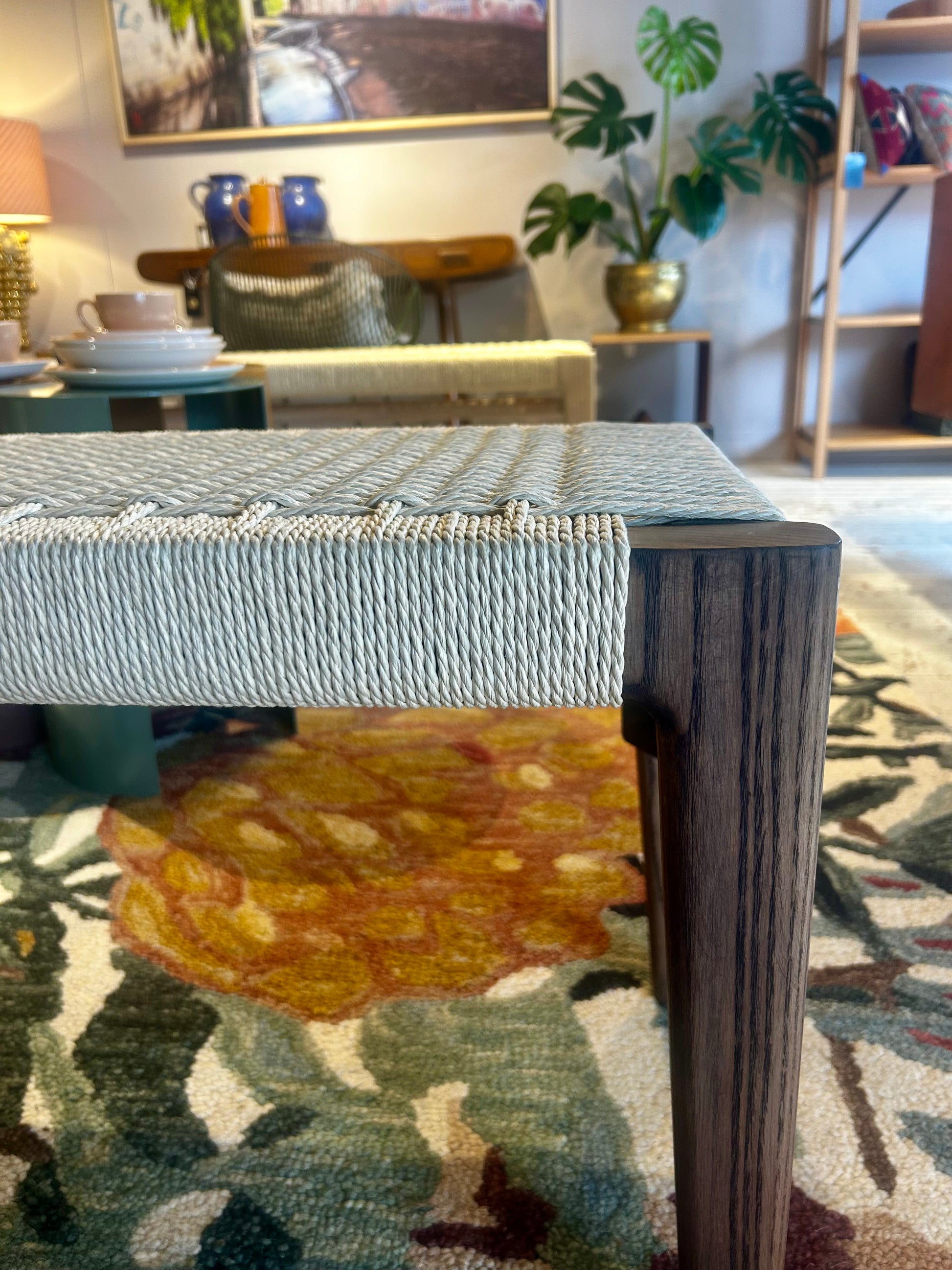 Made from beautiful North American Ash Timber with a Chocolate stain finish and coated with high end hard wax oil. Corded seating made of genuine Danish cord.