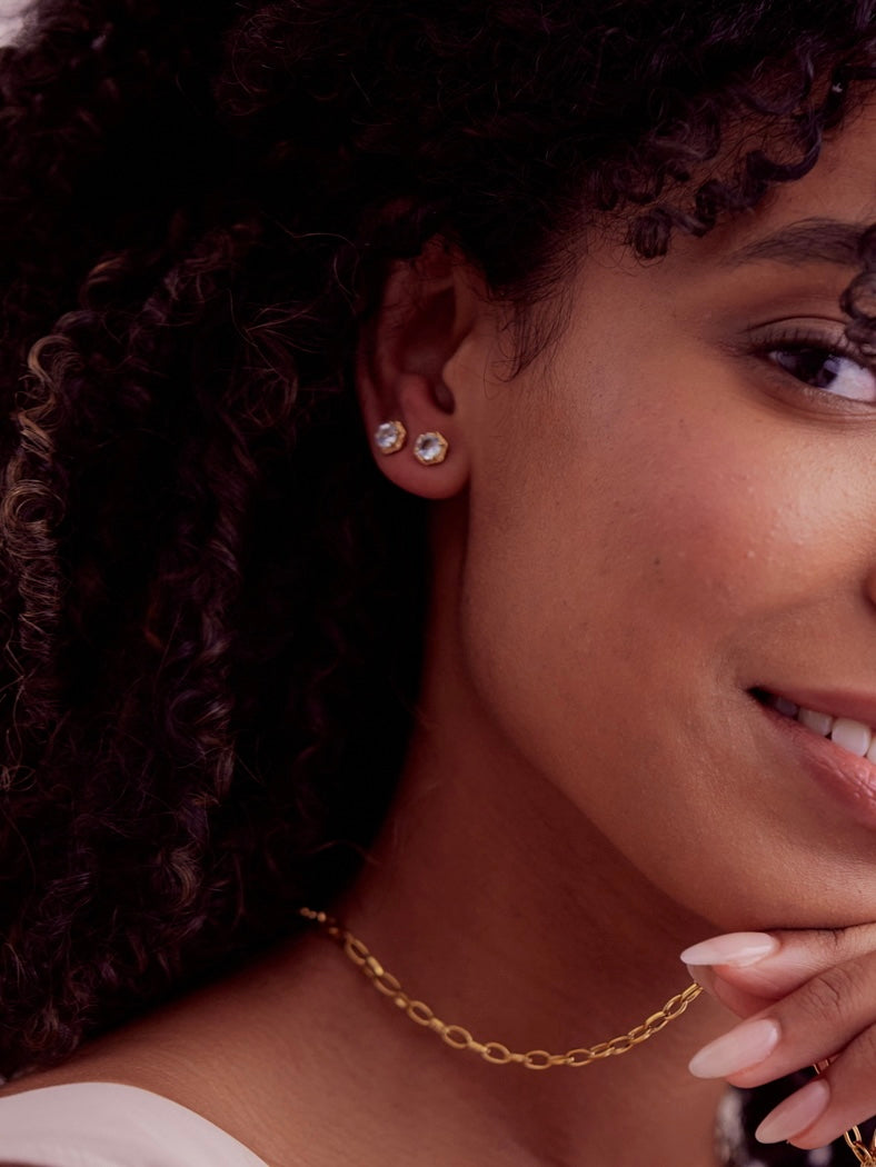 Blue Topaz Glimmer Gold Studs