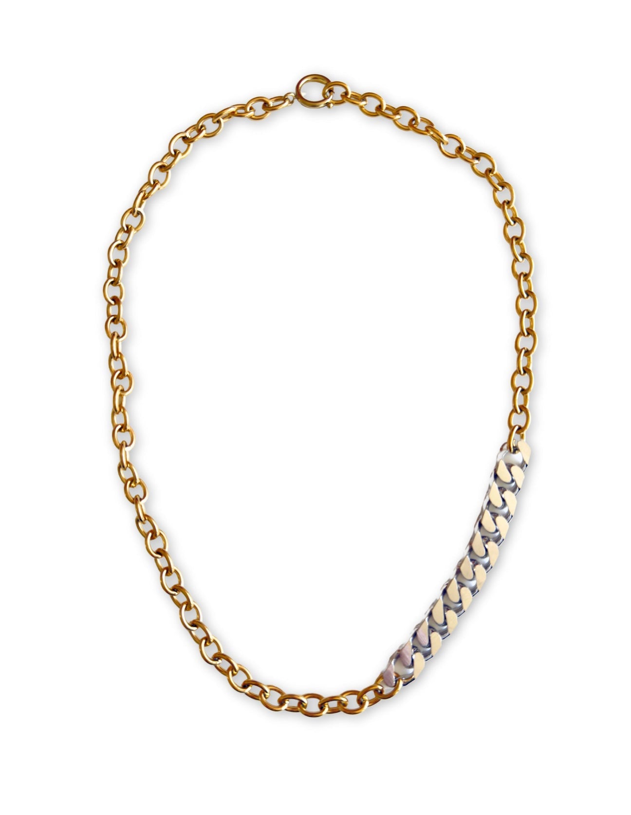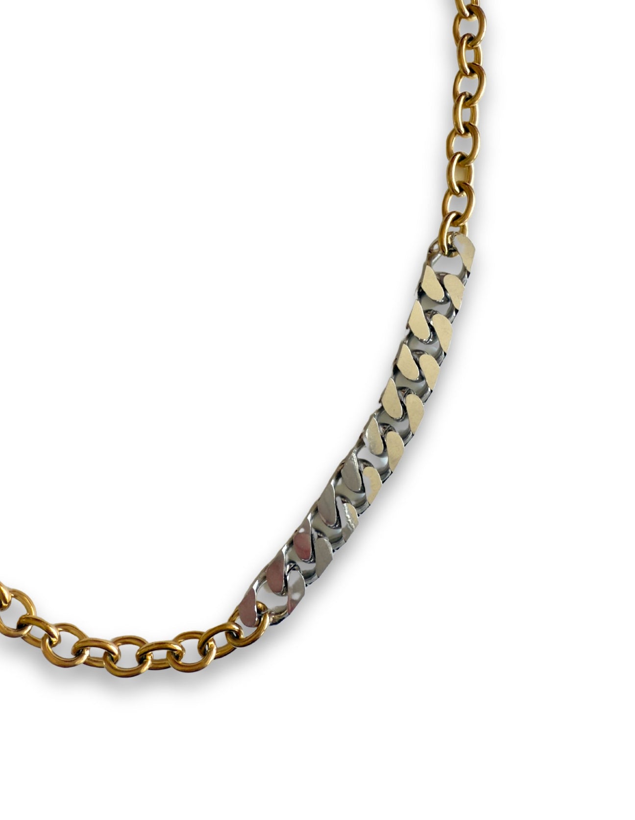 Stainless steel gold plated chain with a feature segment of silver plated curb chain.