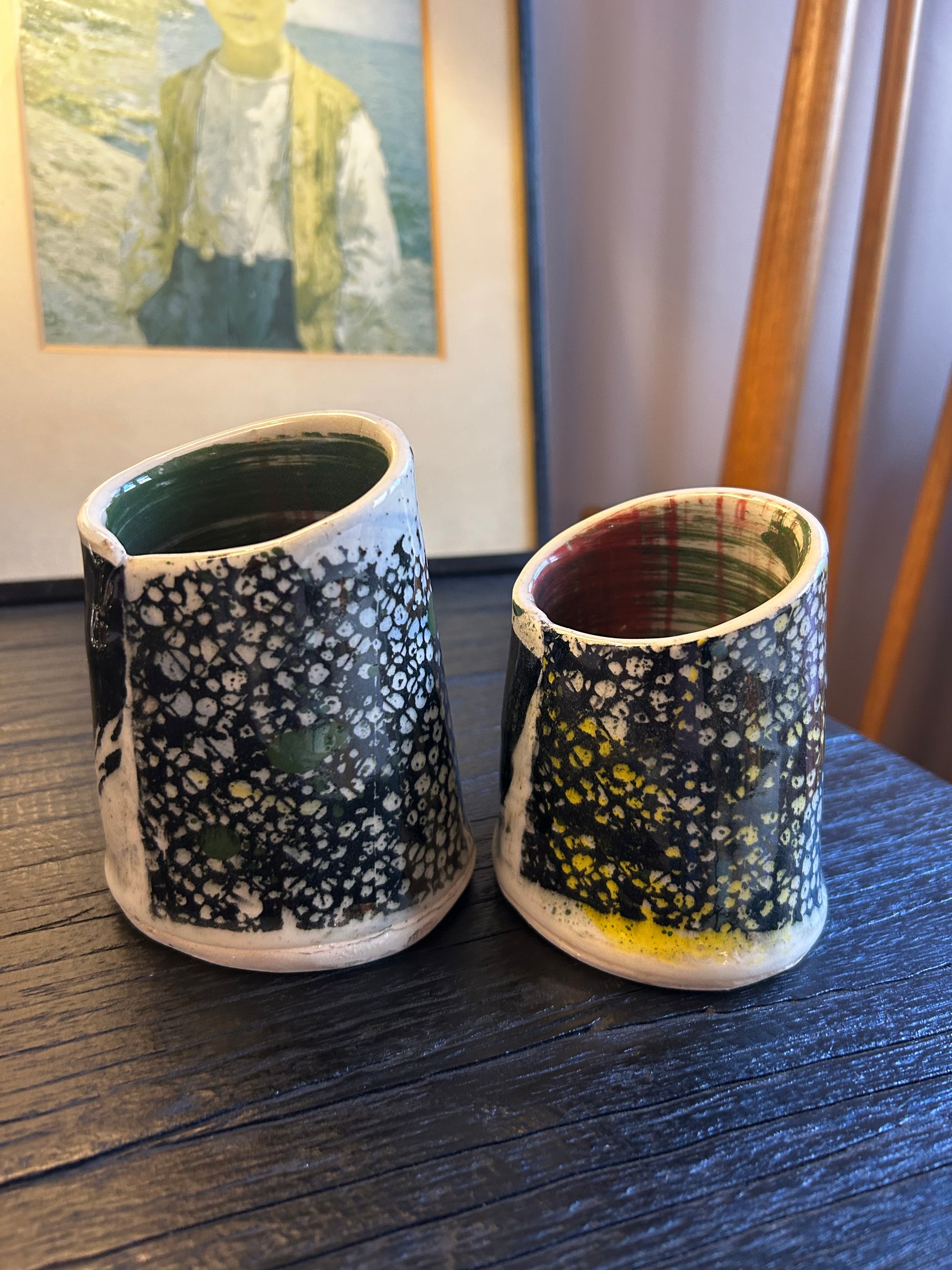 One of a kind, bold on the outside, surprising on the inside. These ceramic vases combine graphic prints with subtle tartan brushstrokes inside - a hidden detail that makes each vessel unique.