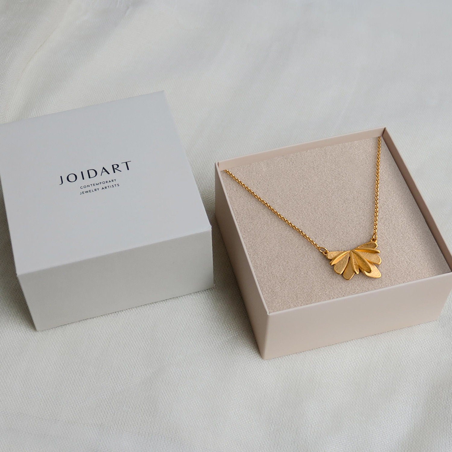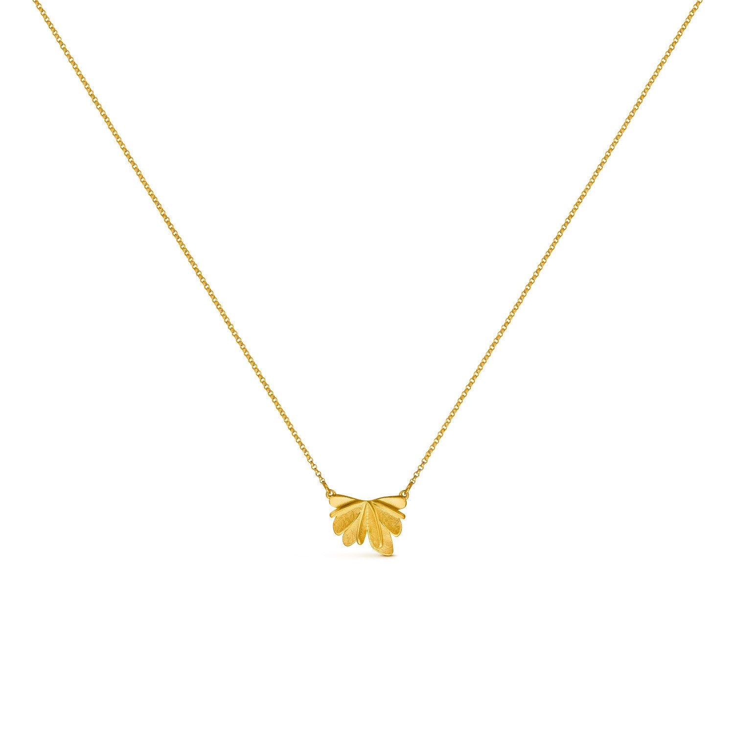 24 K gold-plated matte metal necklace with small central motif. Design inspired by the dance of the starlings on the waters of the Delta de l'Ebre. Chain with lobster closing and extension chain.